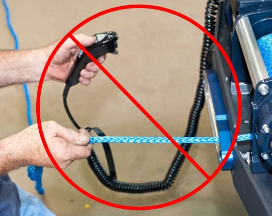 - Winch rope is designed to flatten-out under load, and therefore could get pinched in the corners