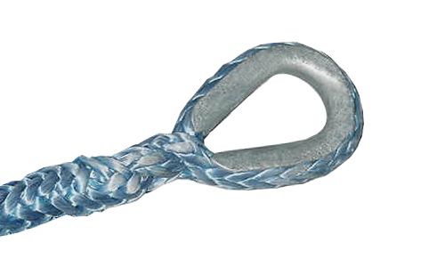 We use a heavy-duty galvanized steel thimble at the looped hook-end of the rope. You will notice