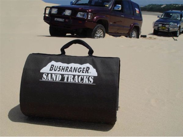 for helping to get a vehicle unstuck in soft terrain such as sand or even snow. Sold in pairs. X-Trax size: 60" x 12". Velcro fastened storage wrap bag. Rubber molded cross beams for positive grip. Re-enforced staibless steel cable for durability.